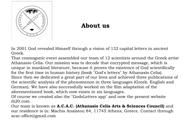 Encyclopedia article – Greek newspaper article – Book "God's letters" (p. 152), Seq."TPK" was transformed in vibration.